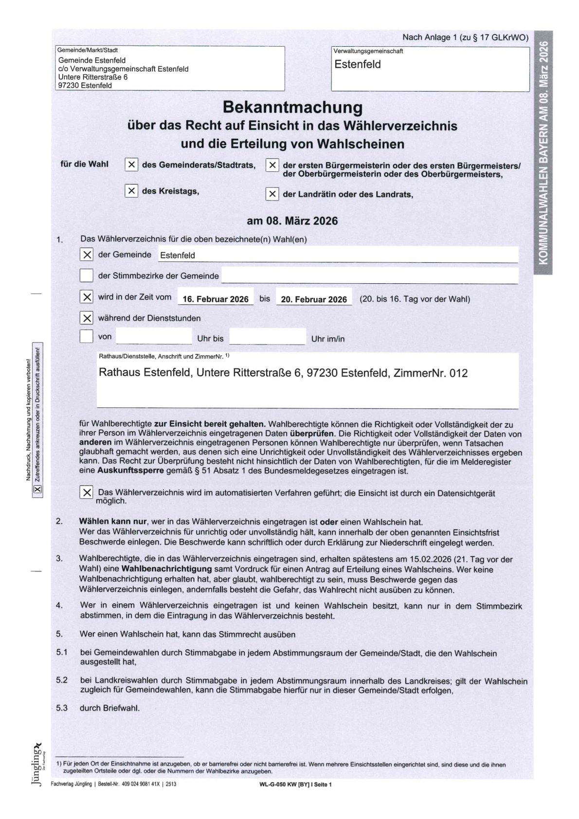 Amtliche Bekanntmachungen für den Markt Eisenheim